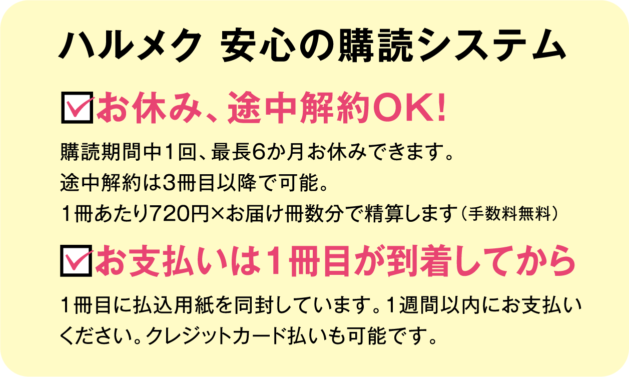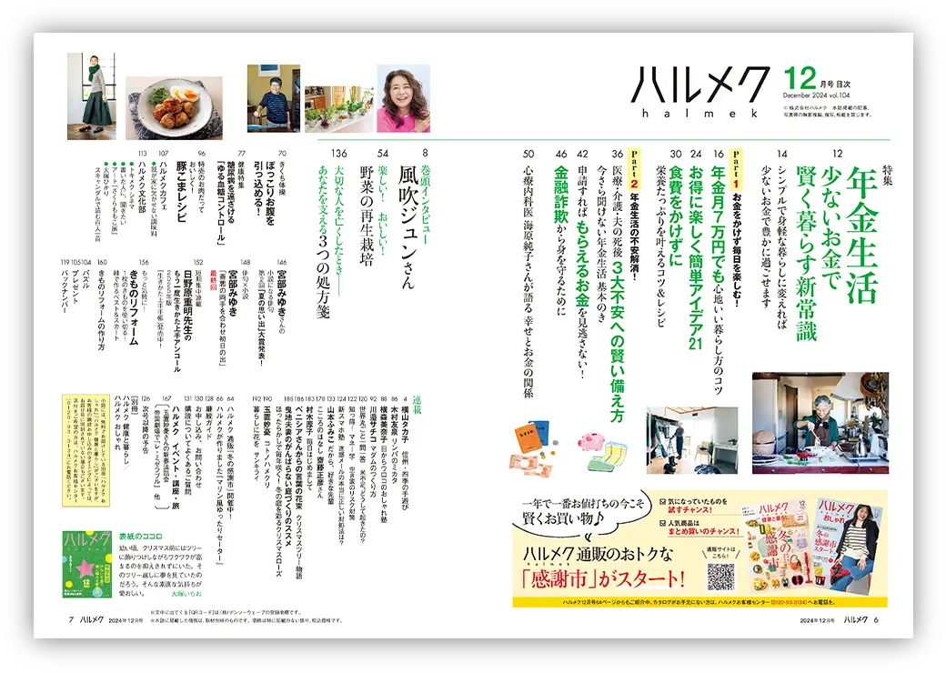 「ハルメク」は書店には一切置かず、ご自宅に直接お届けする定期購読誌。読者の皆様と直接つながることで、世代ならではのお悩みやご要望をよーく聞いて、本当に役立つ特集を丁寧に作りあげる。創刊から変わらないこだわりです。