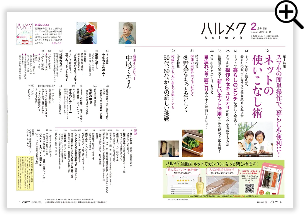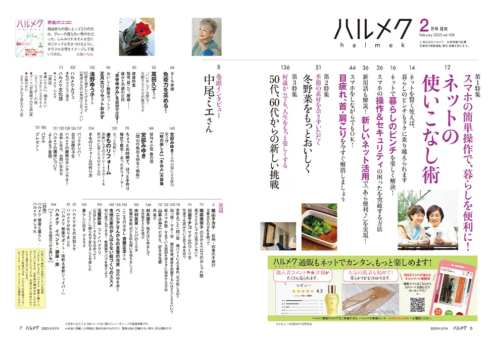 しかも雑誌だけでなく、イベントや旅行、お買い物など、楽しみが広がります。ハルメクを通じてお友達ができたり、新しい趣味が見つかったという方もたくさん! 雑誌から広がるハルメクの世界に、ぜひ遊びにいらしてください。