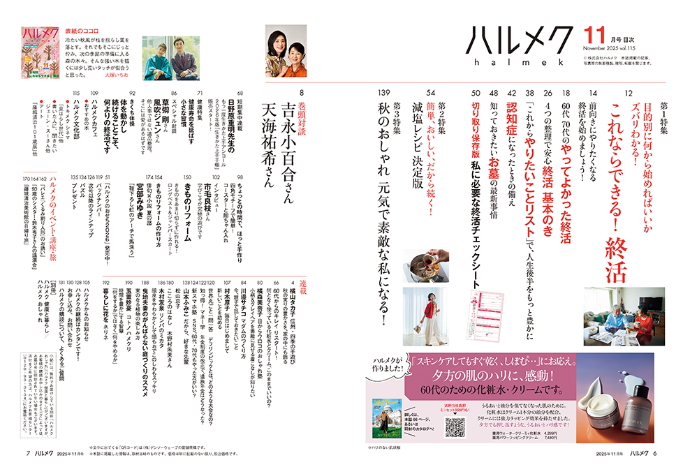 しかも雑誌だけでなく、イベントや旅行、お買い物など、楽しみが広がります。ハルメクを通じてお友達ができたり、新しい趣味が見つかったという方もたくさん! 雑誌から広がるハルメクの世界に、ぜひ遊びにいらしてください。